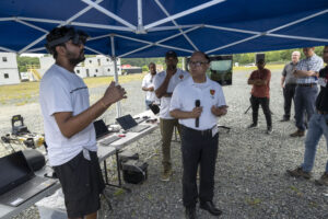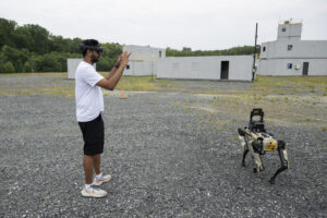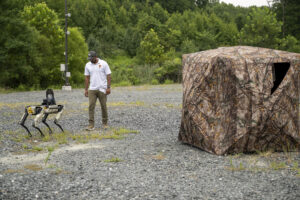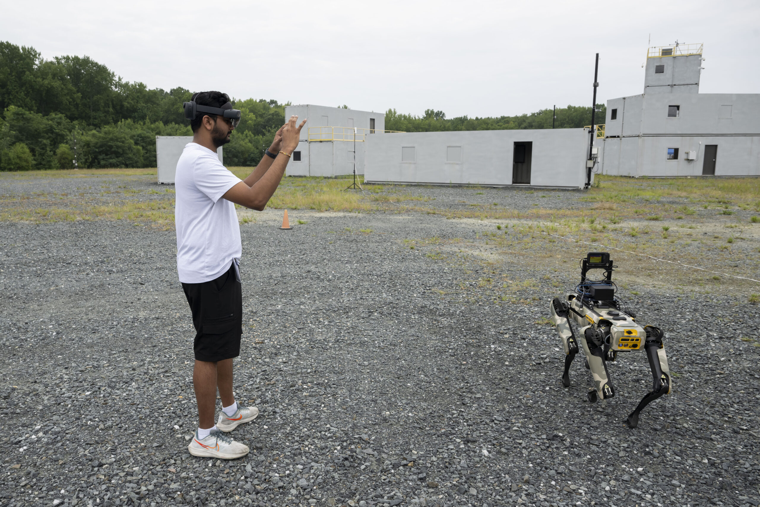 This year our demonstration advanced beyond zero-visibility reconnaissance into dynamic soldier-robot teaming and AI-driven threat response. The system showcased a Spot robot autonomously following and mimicking a soldier using an Extended Kalman Filter–smoothed UWB localization fused with directional scanning. Upon detecting a threat, such as a bunker via a custom-trained object detection module and LLaVA-powered visual reasoning, the robot autonomously dispatched the soldier to investigate using voice-task able commands. Integration with Microsoft HoloLens enabled real-time visualization and imitation of soldier movement, completing a fully functional AI-driven tactical coordination loop. The demo marked a milestone in context-aware, multimodal situational awareness for dismounted operations.